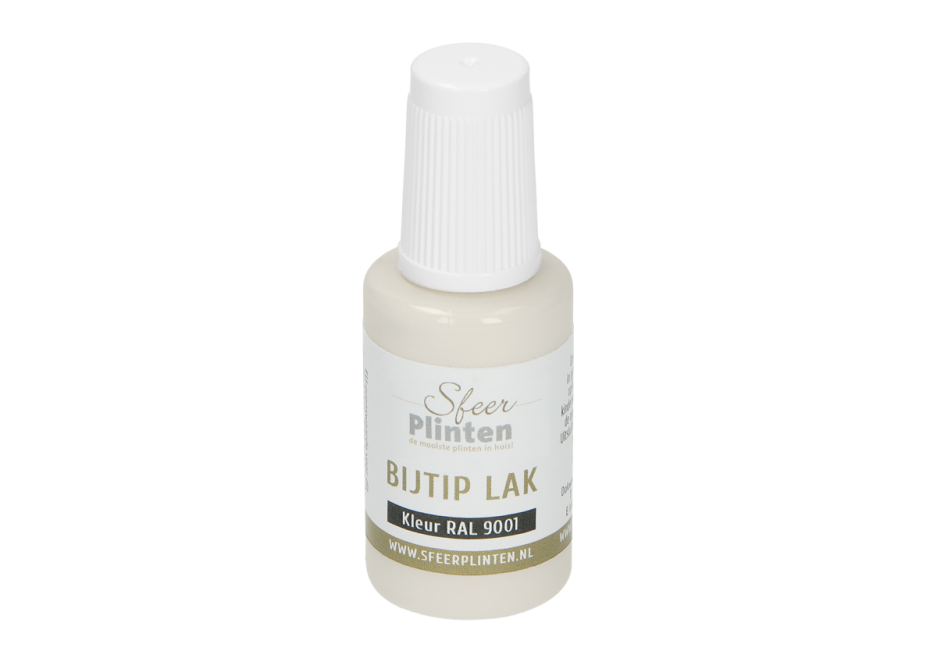 Heb je een beschadiging aan je plint? Met de nieuwe consument vriendelijke plinten bij-tip-lak is dit probleem snel opgelost. Door het handig kwastje zijn beschadigingen eenvoudig gecorrigeerd. Daarnaast is het ook ideaal voor het afwerken van zaagsneden.
