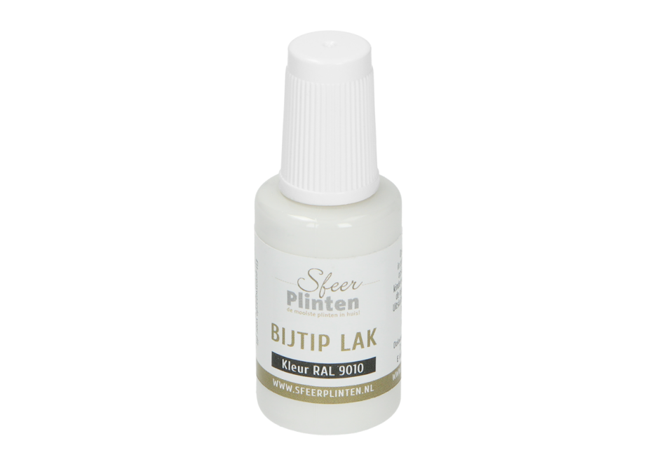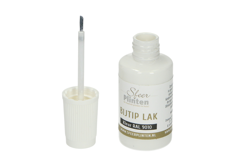 Heb je een beschadiging aan je plint? Met de nieuwe consument vriendelijke plinten bij-tip-lak is dit probleem snel opgelost. Door het handig kwastje zijn beschadigingen eenvoudig gecorrigeerd. Daarnaast is het ook ideaal voor het afwerken van zaagsneden.
