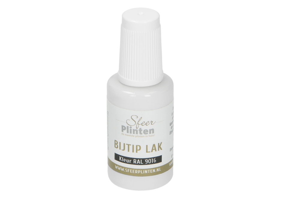 Heb je een beschadiging aan je plint? Met de nieuwe consument vriendelijke plinten bij-tip-lak is dit probleem snel opgelost. Door het handig kwastje zijn beschadigingen eenvoudig gecorrigeerd. Daarnaast is het ook ideaal voor het afwerken van zaagsneden.
