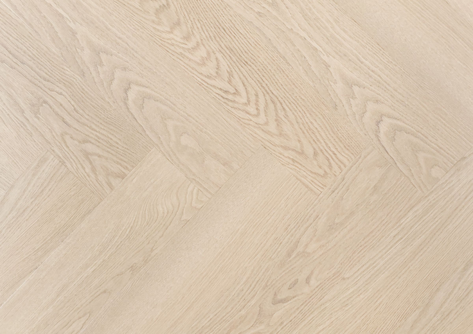 De Douwes Dekker PVC Klik Visgraat Limoen heeft een frisse, bleke eikenkleur met een zachte zandnuance. De lichte houtstructuur en het klassieke visgraatmotief vormen een verfijnd geheel dat licht en ruimte brengt in elke kamer. De planken van 742,95 bij 145,03 millimeter zorgen voor een elegant lijnenspel, terwijl de ultramatte afwerking het oppervlak rustig en natuurlijk houdt.