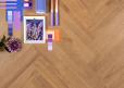 De Otium Jade Herringbone SPC Rigid is een elegante PVC visgraatvloer met een warme lichtbruine houtlook die zorgt voor een natuurlijke en tijdloze uitstraling in ieder interieur. Dankzij het klassieke visgraatpatroon krijgt de ruimte een stijlvolle en luxe uitstraling. De sterke SPC-rigid kern met geïntegreerde ondervloer maakt de vloer stabiel, geluiddempend en eenvoudig te leggen met een klikverbinding. Daarnaast is de vloer waterbestendig, geschikt voor vloerverwarming en -koeling en onderhoudsvriendelijk, waardoor hij perfect is voor intensief dagelijks gebruik.
